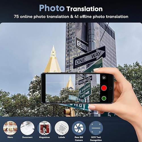 【Photo & Audio Recording Translation】Built-in 8 million pixel high-definition camera, with advanced speech recognition and OCR image recognition technology, our instant language translator can translate both voice and images, supports online photo translation in 75 languages and offline photo translation in 41 languages, making it perfect for menus, road signs, tags and more.