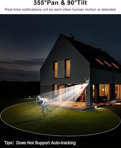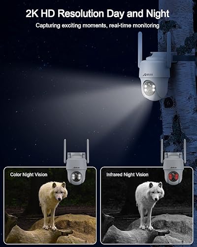 [2K HD Color Night Vision + 360° Panoramic Coverage] Enjoy 3MP 2K HD clarity (1.5x sharper than 1080p) with 4x digital zoom and 4 infrared/spotlights for vivid color night vision or IR mode. The 355° pan & 90° tilt eliminates blind spots for full-area surveillance.