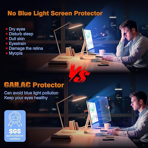 Anti Blue Light + Anti Glare:This upgraded 2-in-1 blue light screen protector combines advanced blue light filtering with anti-glare technology.It reduces eye strain by blocking harmful blue light and minimizing glare, ensuring a more comfortable viewing experience during long hours of use