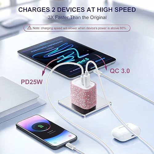 Comment on "Aolcev for iPhone Charger Fast Charging Bling 2 in 1 USB A USB C Charger Block 25W Type C Fast Charging Blocks for iPhone 17 16 15 14 13 iPad Bling USB C Adapter for Galaxy S25 S24 Rhinestones Sliver(Pink)"