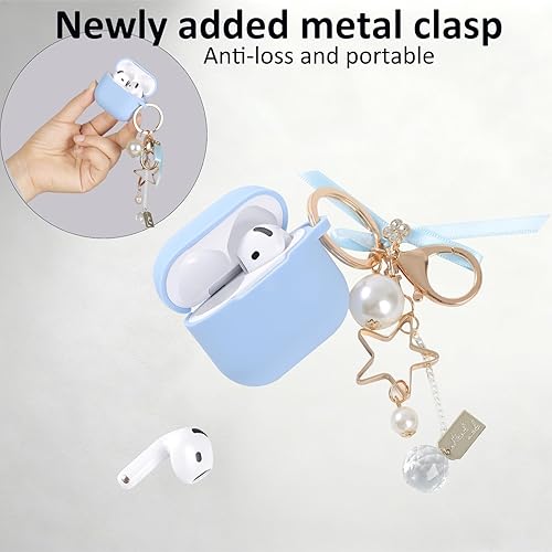 Apple Airpods 4 Case - Airpods 4 Case 2025 Woman Covers Drop Resistant Silicone Earbuds Wireless Accessories Charging case Bow Cute 4th Generation Airpods Keychain (Pink)(bule)
