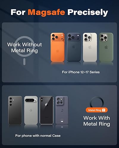 Strong N55 Magnetic Hold – 20 Industrial-grade N55 dual ring magnets ensure a secure grip for your iPhone, even on bumpy roads, while the anti-slip silicone ring prevents sliding and scratches.
