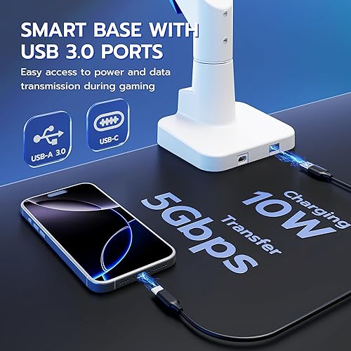 Smart USB Integration - Designed with a smart base with USB function, this heavy duty monitor arm helps you connect your devices easily and effortlessly. The built-in USB-A 3.0 and USB-C ports expand on the ports easily available to you on your desk, providing convenient options for charging and data transmission. The two integrated USB ports allows simultaneous charging for your two devices at any time.