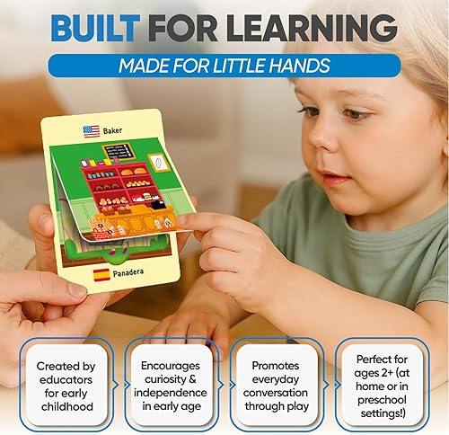 Kidrox Bilingual Professions Flash Cards – Set of 30 interactive cards teaching professions in English and Spanish, designed for toddlers 2+ to build vocabulary and career awareness.