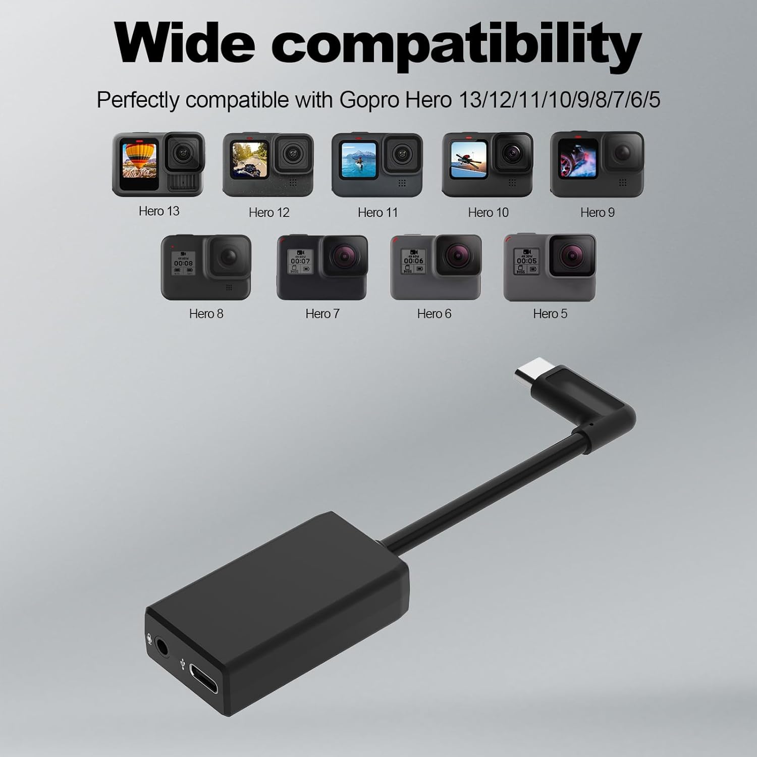 Plug-and-Play Simplicity: No drivers or complicated setup needed! Just plug the mic adapter into your camera's (works for gopro hero camera all series) USB-C port and connect your 3.5mm microphone