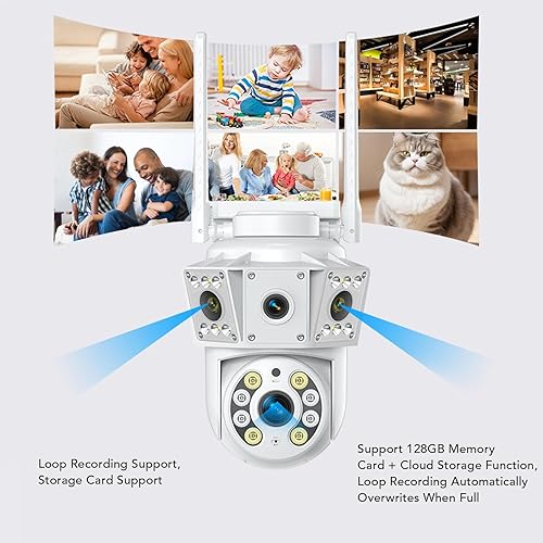 LOOP RECORDING: Supporting up to 128GB memory card (not included) along with cloud storage capabilities, this camera features loop recording. When the storage fills up, it automatically overwrites old footage, making it ideal for use in supermarkets, ordinary households, factories.