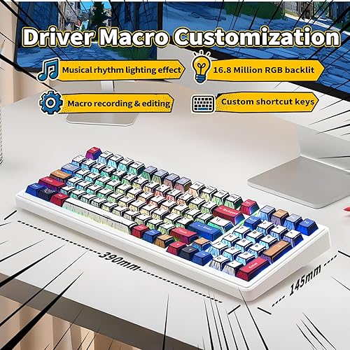 Wireless Computer Keyboards Gaming: This Gaming Keyboard Friendly Top-Mount Design - Offers a superior tactile consistency, firm feeling, and better noice reducing creamy keyboard.Keys support macro customization, which allows macro recording and editing, customize key function and 16.8 million light colors, and supports cool music rhythm lighting effects with driver.