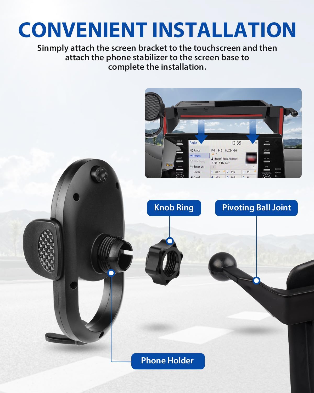 Simple Installation---No drilling or any tools required. Simply attach the screen bracket to the touchscreen and then attach the phone stabilizer to the screen base to complete the installation