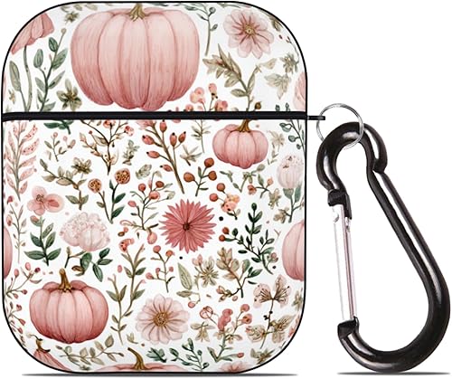 Autumn Pumpkin and Leaves Case for Airpod 2/1 Cover with Keychain Full Protective Plastic Skin Accessories for Women Men(color-7)