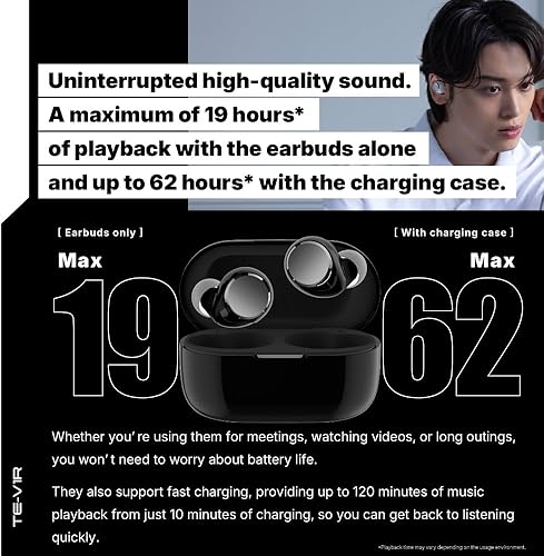 Ultra-Long Battery Life of Up to 62 Hours: The earbuds offer up to 19 hours of playback on their own and up to 62 hours with the charging case. They also support fast charging, providing up to 120 minutes of playback with just a short charge.