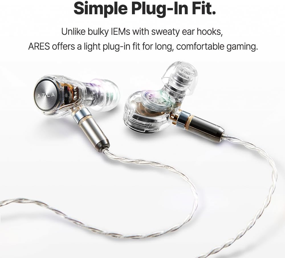 Comment on "AZLA ARES Clear – Gaming Earbuds with Mic for FPS, IEMs for Gaming – 1DD+1BA Dual Drivers, Detachable MMCX, Kevlar Cable – Headphones with Mic Compatible with PS5, Xbox, Nintendo Switch, PC"