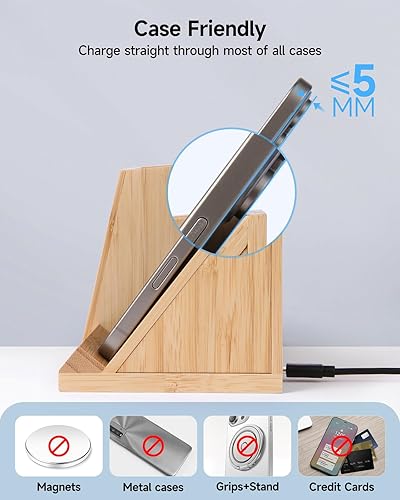 Versatile Compatibility: Supports for iPhone 16/15/14/13/12/11/8 series, Samsung Galaxy S25/S24/S23/S22/S21, Pixel, and any wireless-enabled devices. Ideal for your nightstand organizer or office desk, it ensures a quick and easy charge, even while your phone is in a case (up to 5mm thick).
