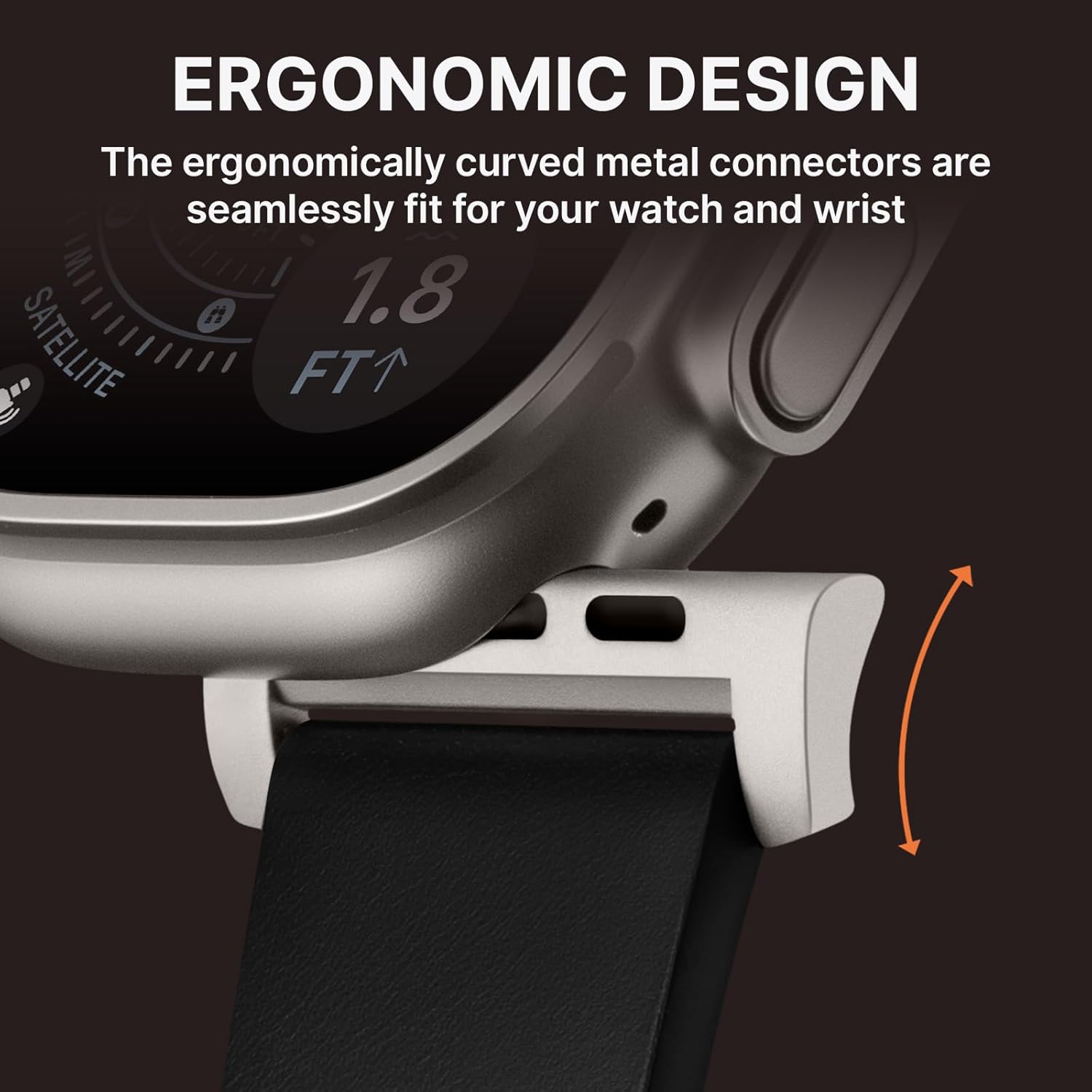 【Ergonomic & Secure Fit】Designed for Apple Watch bands for men and women, it features a curved connector that follows the natural contour of your wrist for exceptional comfort. The connector allows for smooth installation and is provided in Black and Titanium finishes. Designed for a seamless visual harmony, it offers universal compatibility with Ultra and other models, ensuring a secure and stylish fit