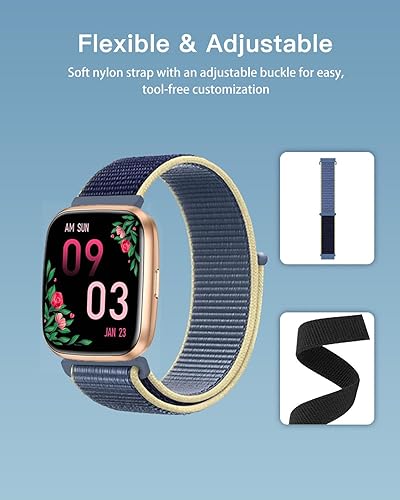 Bands for EGQINR H52 Smart Watch 1.75 inch,Nylon Sport Wristband for EGQINR H52 Smartwatch,Fast-Drying and Sweat-Wicking Replacement Smartwatch Strap,Adjustable Wristband,Blue