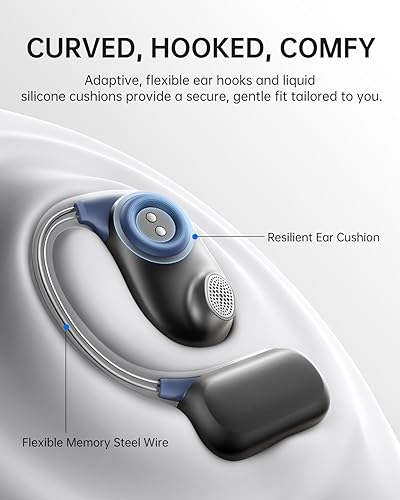 60H EXTENDED PLAYTIME: Enjoy up to 60 hours of listening time with the charging case or 12 hours per charge. A quick 10-minute charge provides an additional 2.5 hours of playtime. The open-ear wireless bluetooth headphones keep you powered throughout the day