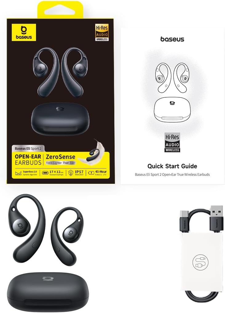 Hi-Res Audio & SuperBass 2.0: Baseus Eli Sport 1 Upgraded Version,Hi-Res Wireless Certified delivers up to 3× the audio sound detail with LDAC codec. the 17x12mm titanium-coated diaphragm and ultra-thin PU material produce deep, punchy bass with zero distortion, powered by SuperBass 2.0 dynamic tuning.with anti-leak micro-in-ear design,Sound is channeled directly into your ear canal for pristine, immersive audio—no external noise interference.