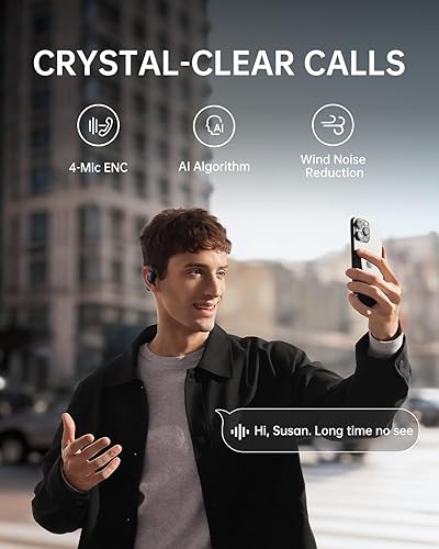 CRYSTAL CLEAR CALLS: Built-in 4 microphones and the advanced AI algorithm accurately pick up your voice while filtering out noise. With Wind Noise Reduction Technology, regular wind noise will be filtered out on busy streets, allowing you to be heard clearly and effortlessly during crucial calls