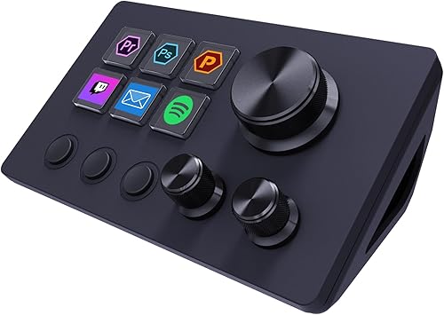 Basicolor Stream Controller Deck Gaming keyboard, Streaming Macro Keypad, with 6 Customizable LCD Shortcut keys, Programmable 3 Buttons and 3 Knobs,trigger actions in OBS/Twitch/YouTube, Mac and PC