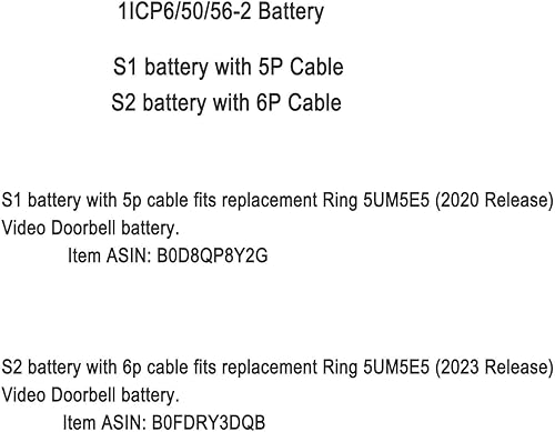 Battery Replacement for Ring Video Doorbell 5UM5E5 (6P Cable S2 Battery)(6P Cable S2 Battery)