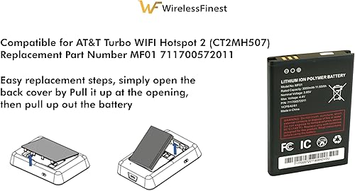 Compatible For AT&T Turbo Hotspot 2 wifi mobile hotspot (CT2MHS01) Model MF01. Replacement battery model number MF01/ PN 711700572011.