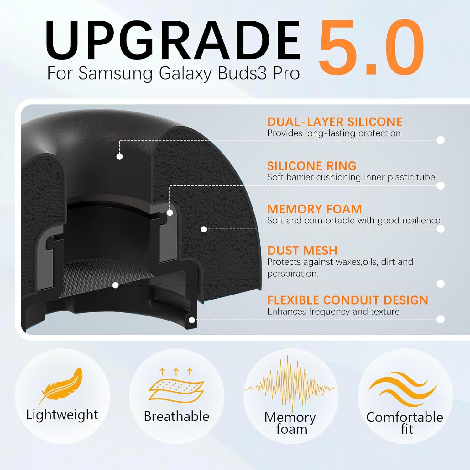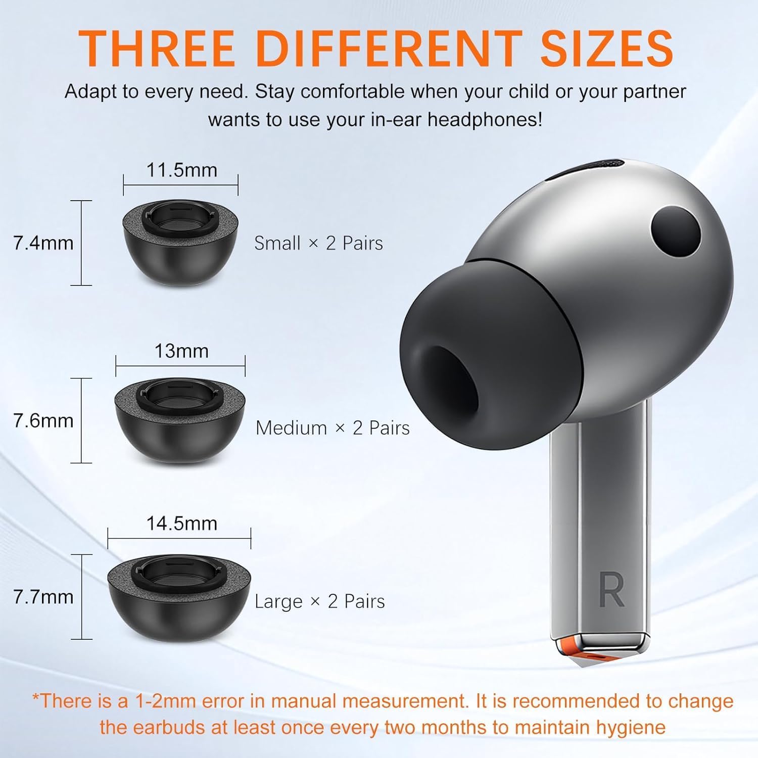 Comment on "Best Memory Foam&Silicone Hybrid Ear Tips for Samsung Galaxy Buds3 Pro,Double Layer Anti-Slip,Ultra-Comfort,Better Noise Cancellation,Fit in The Charging Case,3 Pairs (Black Orange, S/M/L)(Black,L)"