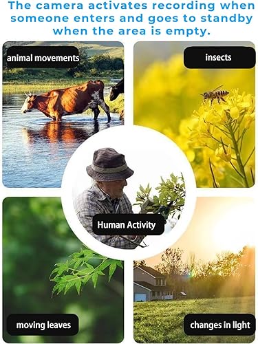 【Solar Powered & True Wireless】 Equipped with a 5W monocrystalline solar panel and 4 × 18650 rechargeable batteries (8000mAh), this solar outdoor 4G camera achieves 100% wireless installation. The camera stays charged with sunlight, ensuring continuous operation without messy wires or frequent charging. First use requires a full charge with the USB cable before switching to solar power.