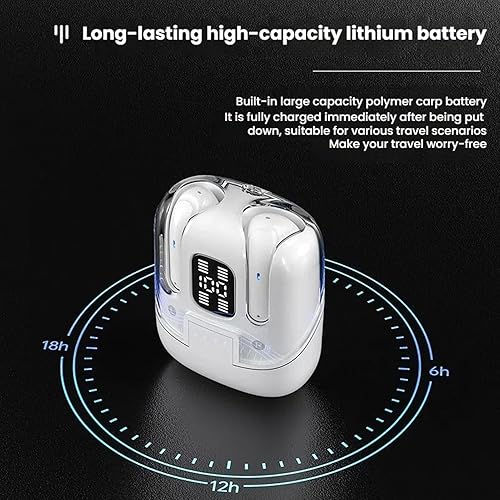 Real Time Battery Display: The earbud charging case features a clear battery display screen, showing the remaining power in real time. This allows you to easily manage the battery status and avoid unexpected power outages. With around 120 hours of standby time, frequent recharging is no longer a concern.