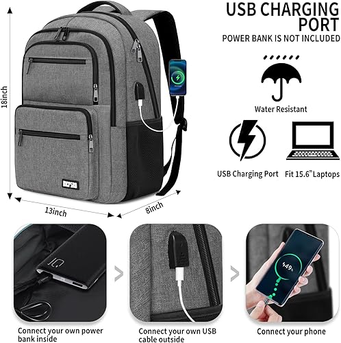 Black Backpack for Men Women, 15.6 inch Laptop Backpack for School, School Backpack for Boys Girls Teens, College Book Bag with USB Port, Water Resistant Bookbag, Business Work Travel(C9-grey,15.6 Inch)