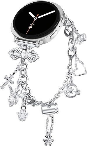 【Unique Design】: The Samsung Galaxy watch 8 band is designed with lovely charm - loving heart, star moon, crown, daisies, angels to show that life is full of love, desire, freedom, happiness, bringing a unique and elegant look to your watch.