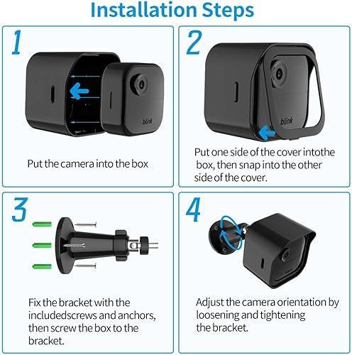 [Easy Install & Wide Compatibility] This Blink wall mount outdoor kit includes one Blink outdoor mount bracket, one Blink camera cover, and screws. Compatible with Blink Outdoor 4 & 3, not XT or XT2. Works as an outdoor Blink camera mount or ceiling installation for flexible positioning.