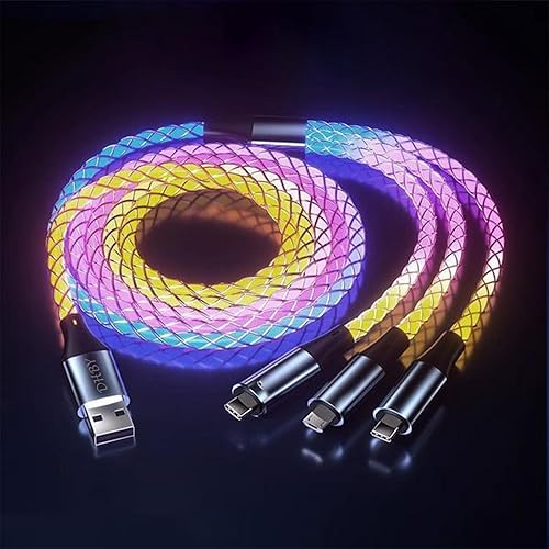 Blue 3-in-1 Fast Charging Cable for Mobile Phones, which Also Serves as a Data Transmission Cable, is Compatible with Almost All Mobile Phones and is Lightweight(USB A TO C Lighted Up Green)