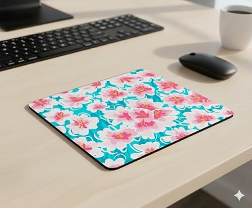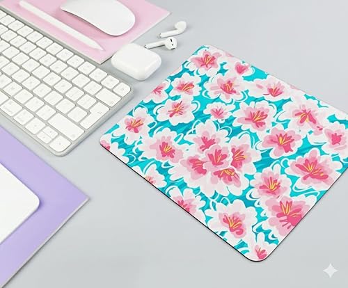 Blue and Pink Floral Mouse Pad | Elegant Desk Mat with Non-Slip Base | Charming Aesthetic for Home, Office, or Dorm
