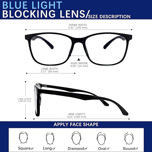 LIGHTWEIGHT AND COMFORTABLE – Our blue light computer glasses are ergonomically designed with ultra-light TR90 frames, flexible and durable for all-day wear without burden.