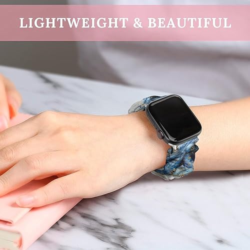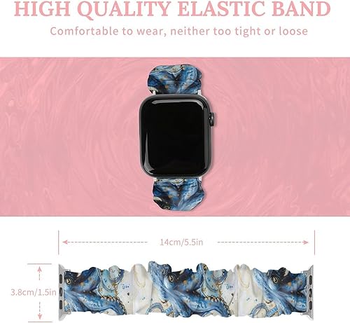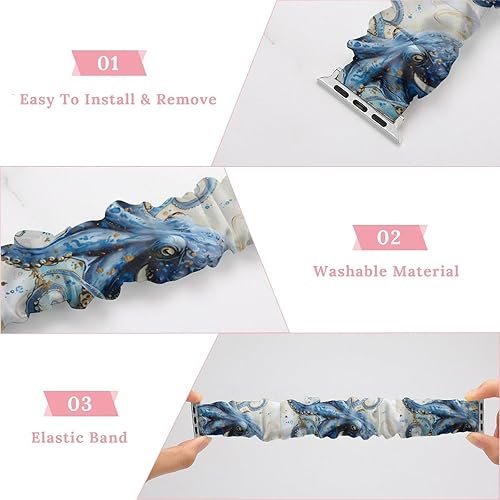 Blue Octopus Watch Band Elastic Scrunchie Bands Sport Watch Strap Wristbands Compatible with Apple Watch(silver-Color,38mm/40mm)