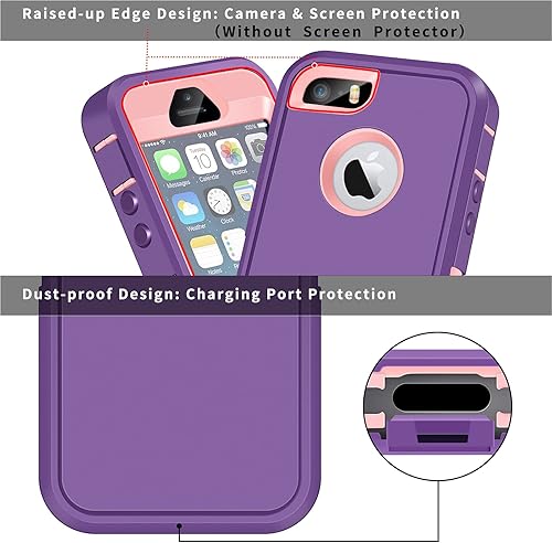 Bluetooth 5.3 Wireless Earbuds & Dual-Layer Shockproof Case for iPhone 5/5s/SE (2016), True Wireless Headphones for Android/iSO & Heavy Duty Rguuged Protective Phone Case for iPhone 5/5s, Purple Pink