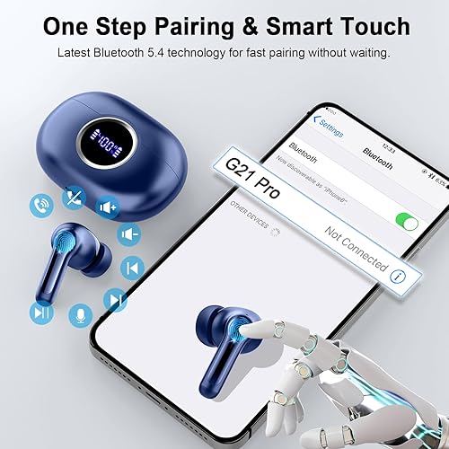 【2025 Upgraded Bluetooth 5.4 with 0.1s Ultra-Low Latency】The Rinsmola G21Pro Bluetooth headphones adds Bluetooth flash pairing technology to the latest Bluetooth version 5.4 for fast pairing in 1 seconds. Compared to the previous version, power consumption is reduced by 40%, signal stability is improved by 60% and interference immunity is increased by 55%. Ensure audio and playback are synchronized for an immersive entertainment experience. After pairing your devices for the first time, your ear buds will automatically connect when you remove them from the charging case.