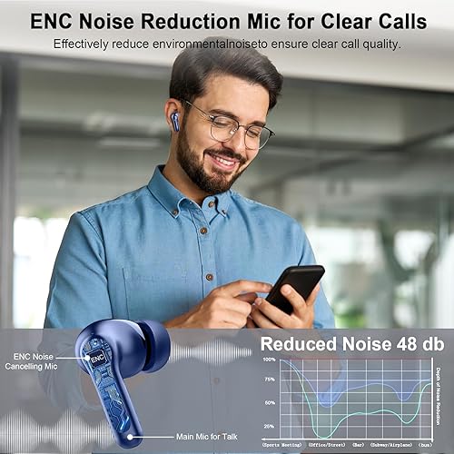 【Anti Slip, Lightweight Design】The 34g charging case with anti sweat matte coating is perfect for the pocket size of jeans. The high-quality sandblasted texture can prevent it from falling off while running - three times more gripping than other earbuds wireless Bluetooth. Whether you are indoors, outdoors, working, or traveling, our wireless earbuds allow you to enjoy personal music moments.