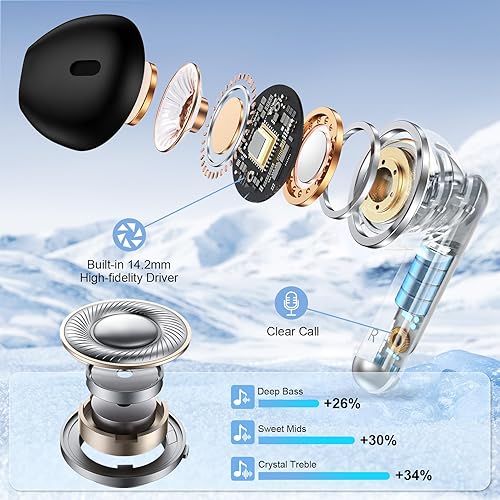【Sensitive and Responsive Touch Control】: Featuring sensitive touch control panels on both left and right ear buds wireless bluetooth earbuds, wireless headphones allow for seamless operation including powering on/off, playing/pausing music, skipping tracks, answering/hanging up calls, adjusting volume levels, activating Siri, and accessing other functions—all at a simple touch. This design liberates your hands while engaging in activities such as sports, driving or running.