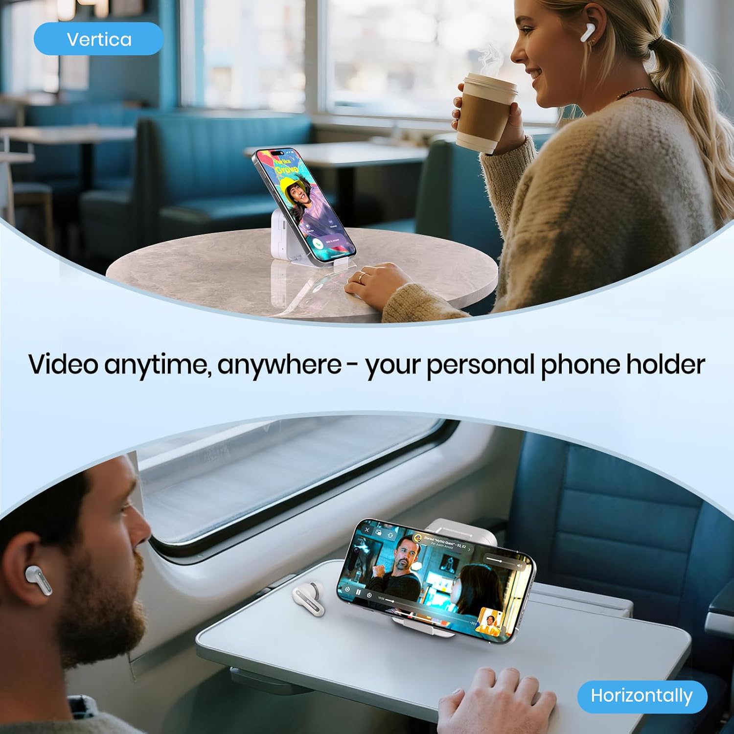 Phone Stand & 2-in-1 Charging Case: Our Bluetooth headphones not only deliver an exceptional music experience, but their charging case can also function as a phone stand. Simply open the back panel, place your phone on the stand, and you can enjoy movies in landscape mode or make video calls in portrait mode—perfect for freeing up your hands during travels and leisure time.