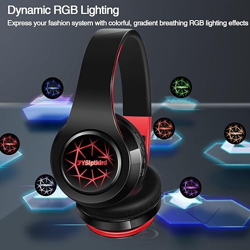 Bluetooth Headphones, Chat- Comfortable Over Ear Stereo Headphones,7 Breathing Led Lights up, Wireless Headset for Adult Teen Kid for Phone/Samsung/Pad/PC/Android/Laptop/TV (Gold)(Red)