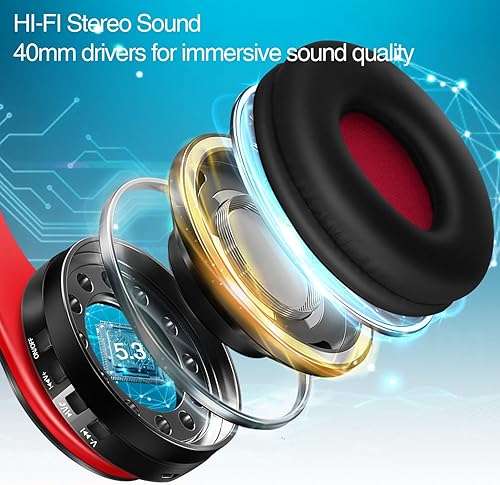 【Bluetooth V5.3 and Easy Connection】Built in two 40mm large bezel driver units and Bluetooth 5.3 technology, our overhead headphones can offer more stable transmission speed, lower latency and better audio output,which give you wonderful music enjoyment.Support all audio devices that have Bluetooth capability, such as, cell phone ,tablet PC,laptop,computer etc. Voice control the mode,big press buttons for easy operation of the headphone