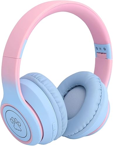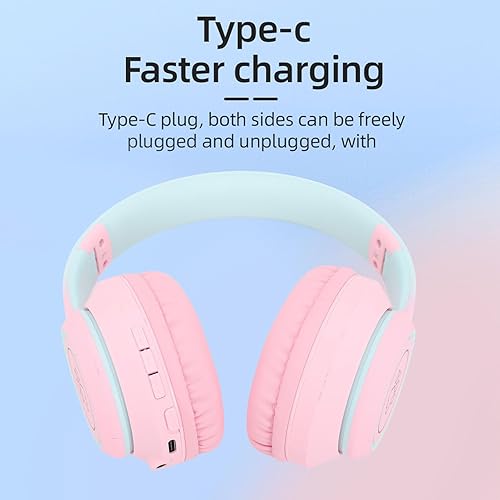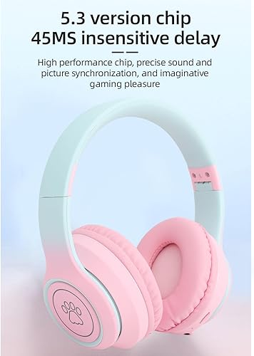 Bluetooth Headphones Microphone, Foldable Over Ear Wireless Headsets Active Noise 20 Hours Usagetime,3.5mm Wired Controller BT 5.3 for Game Sports (Blue)(Pink)