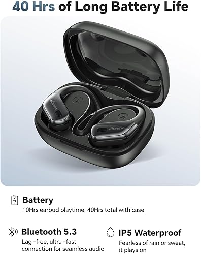 10H Earbud Playtime, 40H Total with Case: Each headphone can play continuously for 10 hours after being fully charged, saying goodbye to frequent charging and allowing you to focus on every run, work or study. The compact charging case offers three additional charges, allowing the earbuds to be used for a total of 40 hours