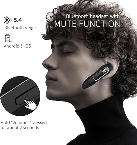【HD Voice with Dual-Mic Noise Cancelling】Wireless headset earpiece Dual mics + silicon omnidirectional mic reduce 80% background noise. Bluetooth 5.4 with digital noise reduction delivers 30% clearer calls, ideal for loud environments or phone conversations.