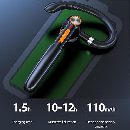 Bluetooth Headset,Wileless Bluetooth Earpiece with ENC Noise Cancelling Mic,Hands-Free Headphone with Long Playtime,Single Earhook Earbuds Waterproof for Office/Trucker/Business/Driving/Workout