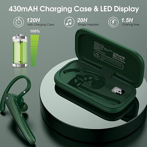 Comment on "Bluetooth Headset, Wireless Bluetooth Earpiece with ENC Noise Canceling Mic, 120Hrs Talk Single-Ear Headphones, LED Display, IPX7, V5.4 Hand-Free Earphone for Business/Trucker/Driver, Green(Green)"