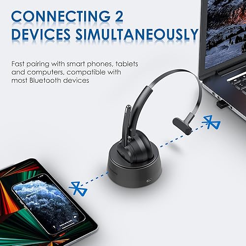 【COMFORTABLE & LONG BATTERY LIFE】This Bluetooth headset provides you with a comfortable wearing experience for intensive use throughout the day. Comfortable and breathable earmuff ensure all-day comfort, and the adjustable headband fits any head shape without slipping off your head. This Bluetooth headset can be fully charged in 1.5 hours and provides up to 35 hours of talk time or 40 hours of music playback (70% volume) when fully charged