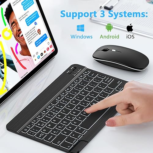 Bluetooth Keyboard and Mouse Combo for iPad Keyboard with 7-Color Backlit, Rechargeable Wireless Keyboard fit iPad 10th/9th/8th Gen, iPhone,Tablet, Smartphone iOS Android Windows