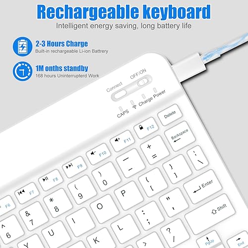 Long-lasting Use: Built-in rechargeable lithium battery, this keyboard for ipad can be used continuously for over 20 days after fully charged (2 hours per day). Automatically enters sleep mode after 10 minutes of inactivity, press any key to wake it up