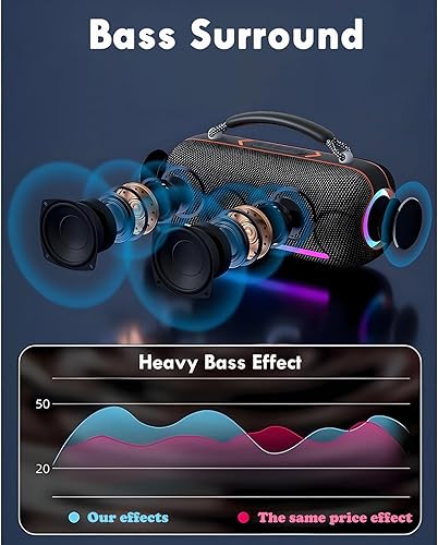 Comment on "Bluetooth Speaker, Portable Wireless Bluetooth Speaker, IPX5 Waterproof with 60W HD Sound, 6 RGB Light Modes, 4000mAh Battery, 10H Playtime, TF/AUX/USB Support, Dual Stereo for Outdoor Party, Black(Black)"
